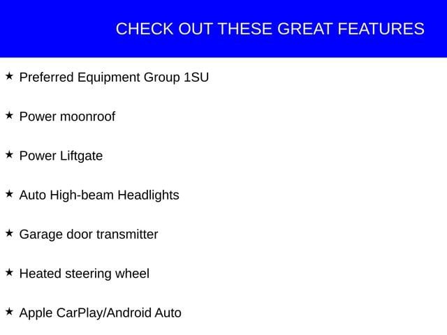 This Buick Envision has great equipment and many features including, Apple CarPlay/Android Auto, Auto High-beam Headlights, Garage door transmitter, Heated steering wheel, Power Liftgate, Power moonroof, Preferred Equipment Group 1SU.