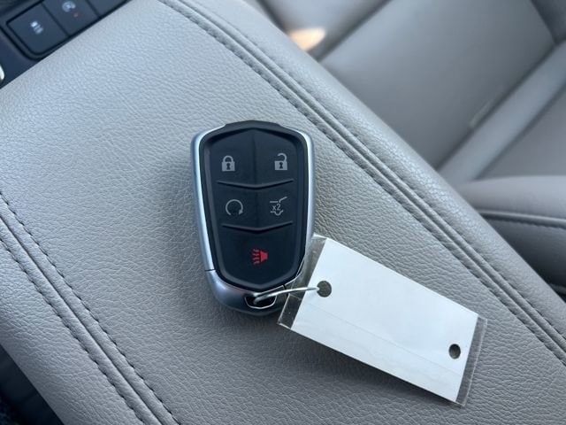 - Opens or closes when the system senses the key fob and the driver extends their foot under the left-hand side of the rear bumper over an image of the Cadillac Crest projected under the vehicle