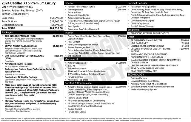 This Cadillac XT6 has great equipment and many features including.Radiant Red Tintcoat 2024 Cadillac XT6 Premium Luxury AWD 4D Sport Utility 3.6L V6 DI VVT Certified.Cadillac Certified Pre-Owned Details:* Vehicle History* Roadside Assistance* 172 Point Inspection* Transferable Warranty* Courtesy transportation & 24 hour Roadside Assistance for the life of the warranty and stringent 172-point inspection & reconditioning process. SiriusXM 3-month trial subscription.* Warranty Deductible: $0* Limited Warranty: 12 Month/Unlimited Mile (whichever comes first) after new car warranty expires or from certified purchase dateCome see why more people choose our Community!