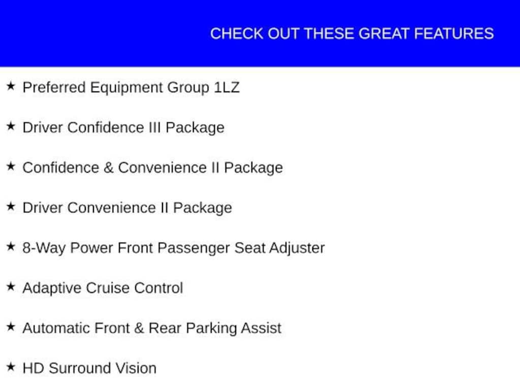 This Chevrolet Equinox has great equipment and many features including, 8-Way Power Front Passenger Seat Adjuster, Adaptive Cruise Control, Automatic Front & Rear Parking Assist, Confidence & Convenience II Package, Driver Confidence III Package, Driver Convenience II Package, HD Surround Vision, Heated Rear Outboard Seating Positions, Preferred Equipment Group 1LZ, Ventilated Driver Seat, Ventilated Front Passenger Seat.
