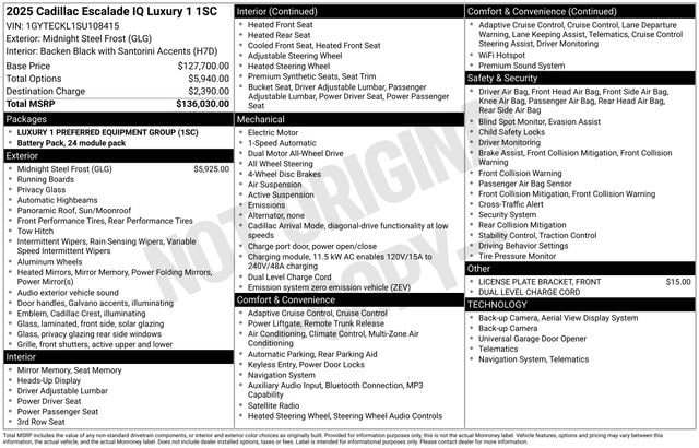 2025 Cadillac Escalade IQ Luxury 1 AWD 1-Speed Automatic Electric Motor Midnight Steel Frost This Cadillac Escalade IQ has great equipment and many features including.