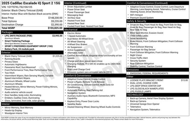 2025 Cadillac Escalade IQ Sport 2 AWD 1-Speed Automatic Electric ZEV 680hp Black Cherry Tintcoat This Cadillac Escalade IQ has great equipment and many features including.