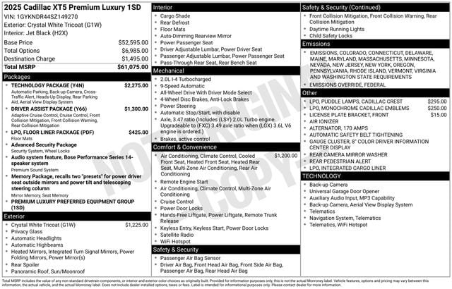 2025 Cadillac XT5 Premium Luxury AWD 9-Speed Automatic 2.0L Turbocharged Crystal White Tricoat This Cadillac XT5 has great equipment and many features including.