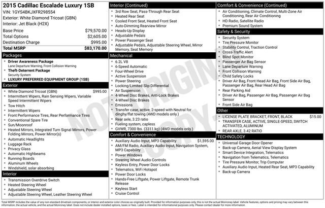 White Diamond Tricoat 2015 Cadillac Escalade Luxury 4WD 4D Sport Utility Vortec 6.2L V8 SIDI