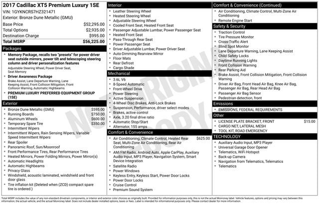 Bronze Dune Metallic 2017 Cadillac XT5 Premium Luxury FWD 4D Sport Utility 3.6L V6 DI VVT 19/27 City/Highway MPG