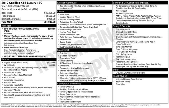 Crystal White Tricoat 2019 Cadillac XT5 Luxury FWD 4D Sport Utility 3.6L V6 DI VVT 19/26 City/Highway MPG
