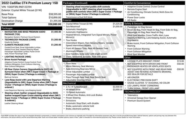 This Cadillac CT4 has great equipment and many features including.Crystal White Tricoat 2022 Cadillac CT4 Premium Luxury AWD 4D Sedan 2.7L Turbo 21/29 City/Highway MPGCome see why more people choose our Community!