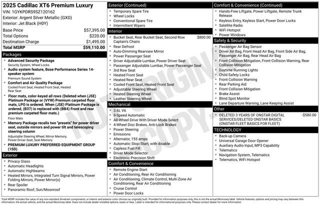 Argent Silver Metallic 2025 Cadillac XT6 Premium Luxury AWD 4D Sport Utility 3.6L V6 DI VVT