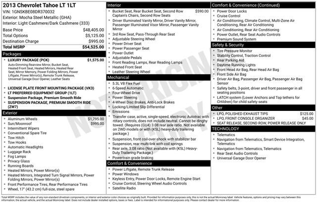 Mocha Steel Metallic 2013 Chevrolet Tahoe LT 4WD 4D Sport Utility Vortec 5.3L V8 SFI Flex Fuel Iron Block