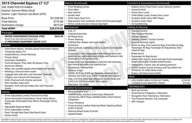 Summit White 2015 Chevrolet Equinox LT 1LT AWD 4D Sport Utility 2.4L 4-Cylinder SIDI DOHC VVT 20/29 City/Highway MPG