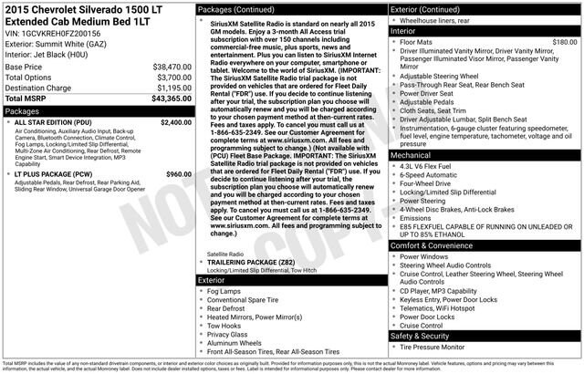 This Chevrolet Silverado 1500 has great equipment and many features including.Summit White 2015 Chevrolet Silverado 1500 LT LT1 4WD 4D Double Cab EcoTec3 4.3L V6Come see why more people choose our Community!