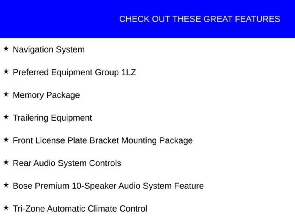 This Chevrolet Traverse has great equipment and many features including, 8-Way Power Driver Seat, Auto-Dimming Inside Rear-View Mirror, Bluetooth® For Phone, Body-Color Moldings w/Chrome Bodyside Accents, Bose Premium 10-Speaker Audio System Feature, Color Touch Navigation System, Dual Exhaust w/Bright Tips, Enhanced Driver Information Center, Forward Collision Alert & Lane Departure Warning, Front Fog Lamps, Front License Plate Bracket Mounting Package, Frontal & Side-Impact Airbags, Heated Steering Wheel, Heavy-Duty Cooling System, Interior Wood Grain Center Stack & Interior Trim, Leather-Wrapped Steering Wheel, Memory Package, Navigation System, NavTraffic, Power Windows w/Driver Express-Up & Down, Power-Folding Heated Body-Color Outside Mirrors, Preferred Equipment Group 1LZ, Rear Audio System Controls, Rear Park Assist, Rear Power Liftgate, Remote Vehicle Start, Side Blind Zone Alert & Rear Cross Traffic Alert, Trailer Hitch, Trailering Equipment, Tri-Zone Automatic Climate Control, Universal Home Remote, Variable Effort Power Steering.