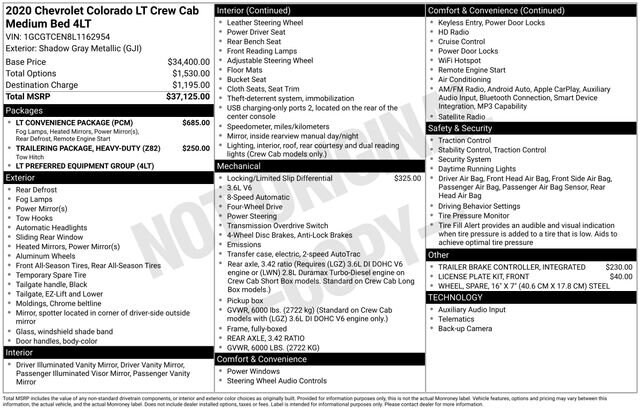 This Chevrolet Colorado has great equipment and many features including.Shadow Gray Metallic 2020 Chevrolet Colorado LT 4WD 4D Crew Cab V6Come see why more people choose our Community!