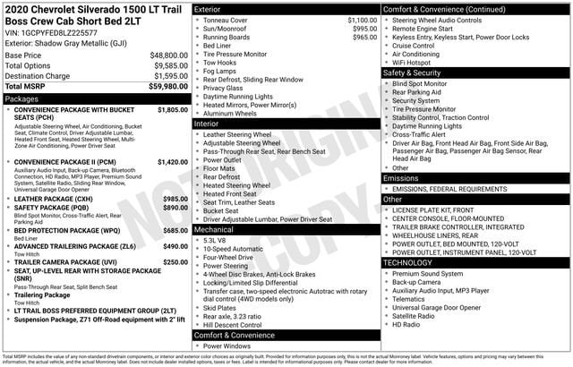 Shadow Gray Metallic 2020 Chevrolet Silverado 1500 LT Trail Boss 4WD 4D Crew Cab EcoTec3 5.3L V8