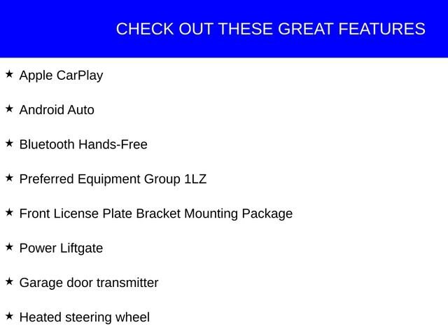 This Chevrolet Traverse has great equipment and many features including, Apple CarPlay, Android Auto, Bluetooth Hands-Free, Front License Plate Bracket Mounting Package, Garage door transmitter, Heated front seats, Heated rear seats, Heated steering wheel, Power Liftgate, Preferred Equipment Group 1LZ.
