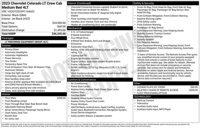 This Chevrolet Colorado has great equipment and many features including.Black 2023 Chevrolet Colorado LT 4WD 4D Crew Cab 2.7L TurboCome see why more people choose our Community!
