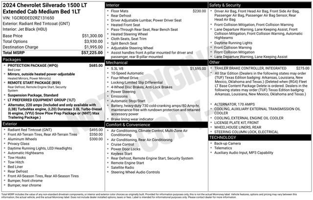 This Chevrolet Silverado 1500 has great equipment and many features including.Radiant Red Tintcoat 2024 Chevrolet Silverado 1500 LT LT1 4WD 4D Extended Cab EcoTec3 5.3L V8Come see why more people choose our Community!