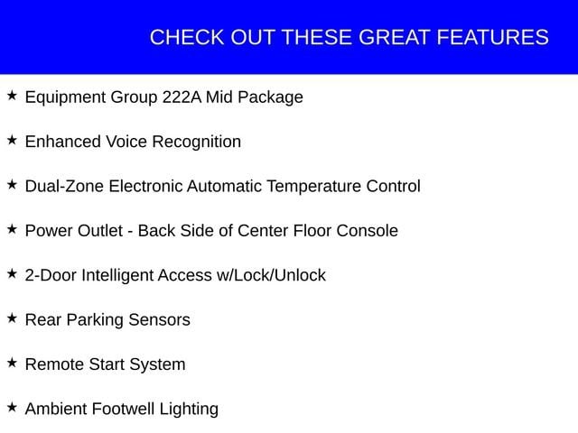This Ford Bronco has great equipment and many features including, 2-Door Intelligent Access w/Lock/Unlock, Ambient Footwell Lighting, Auto-Dimming Interior Rear-View Mirror, Connected Navigation, Dr & Pass Illuminated Sliding Visor Vanity Mirrors, Dual-Zone Electronic Automatic Temperature Control, Enhanced Voice Recognition, Equipment Group 222A Mid Package, Front Row Heated Seats, Power Outlet - Back Side of Center Floor Console, Rear Parking Sensors, Remote Start System.