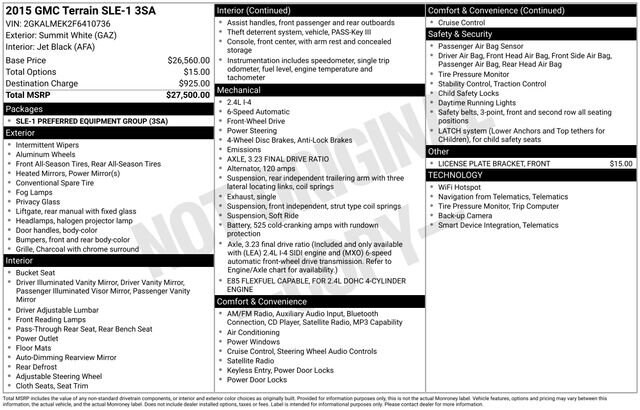 Summit White 2015 GMC Terrain SLE-1 FWD 4D Sport Utility 2.4L 4-Cylinder SIDI DOHC VVT 22/32 City/Highway MPG