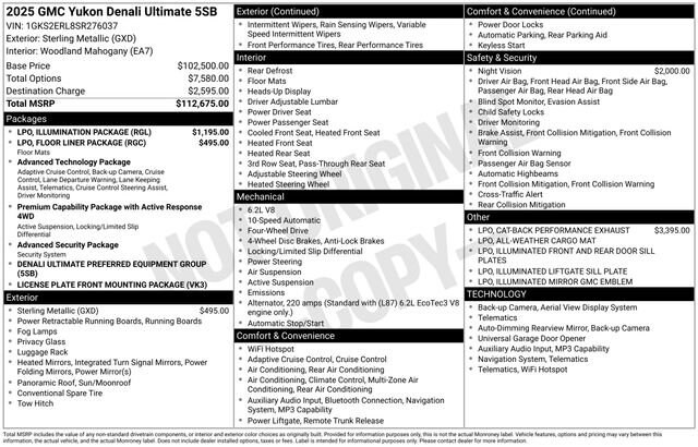 This GMC Yukon has great equipment and many features including.Sterling Metallic 2025 GMC Yukon Denali Ultimate 4WD 4D Sport Utility EcoTec3 6.2L V8Come see why more people choose our Community!