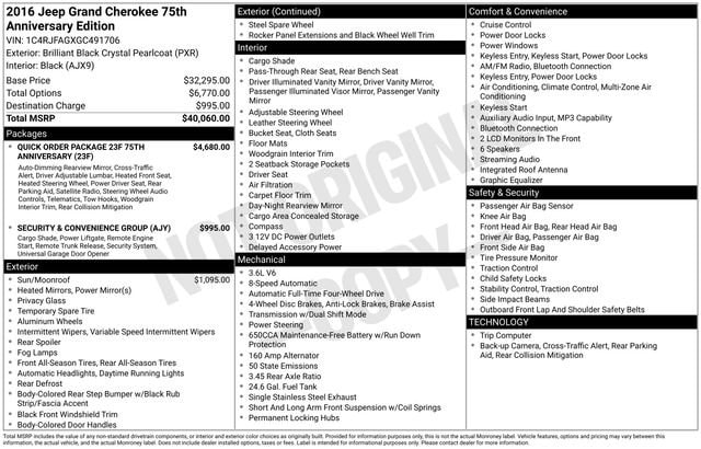 This Jeep Grand Cherokee has great equipment and many features including.Brilliant Black Crystal Pearlcoat 2016 Jeep Grand Cherokee 4WD 4D Sport Utility 3.6L V6 24V VVTCome see why more people choose our Community!