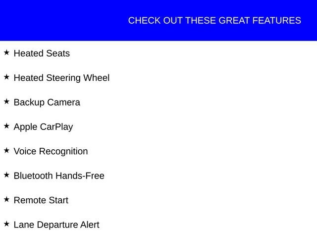 This Jeep Cherokee has great equipment and many features including, Heated Seats, Heated Steering Wheel, Backup Camera, Apple CarPlay, Voice Recognition, Bluetooth Hands-Free, Remote Start, Lane Departure Alert, Power Seat, Dual Power Seats, Quick Order Package 26G.