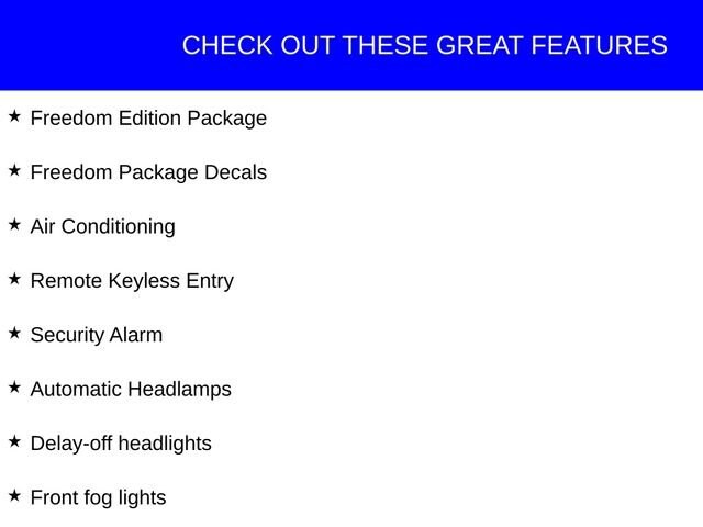 Step inside and you'll be greeted by a spacious and well-appointed interior, featuring premium cloth seats with leather accents, a leather-wrapped steering wheel, and a user-friendly Uconnect infotainment system. The Freedom Edition's unique interior touches, such as the American Flag decals and Oscar Mike badge, add a touch of personalized style.