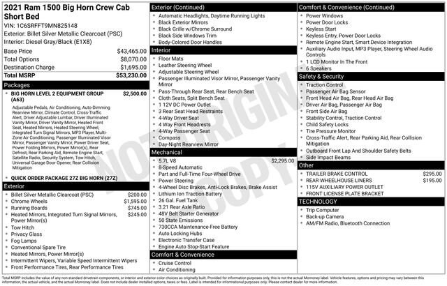 Billet Silver Metallic Clearcoat 2021 Ram 1500 Big Horn/Lone Star 4WD 4D Crew Cab HEMI 5.7L V8 Multi Displacement VVT